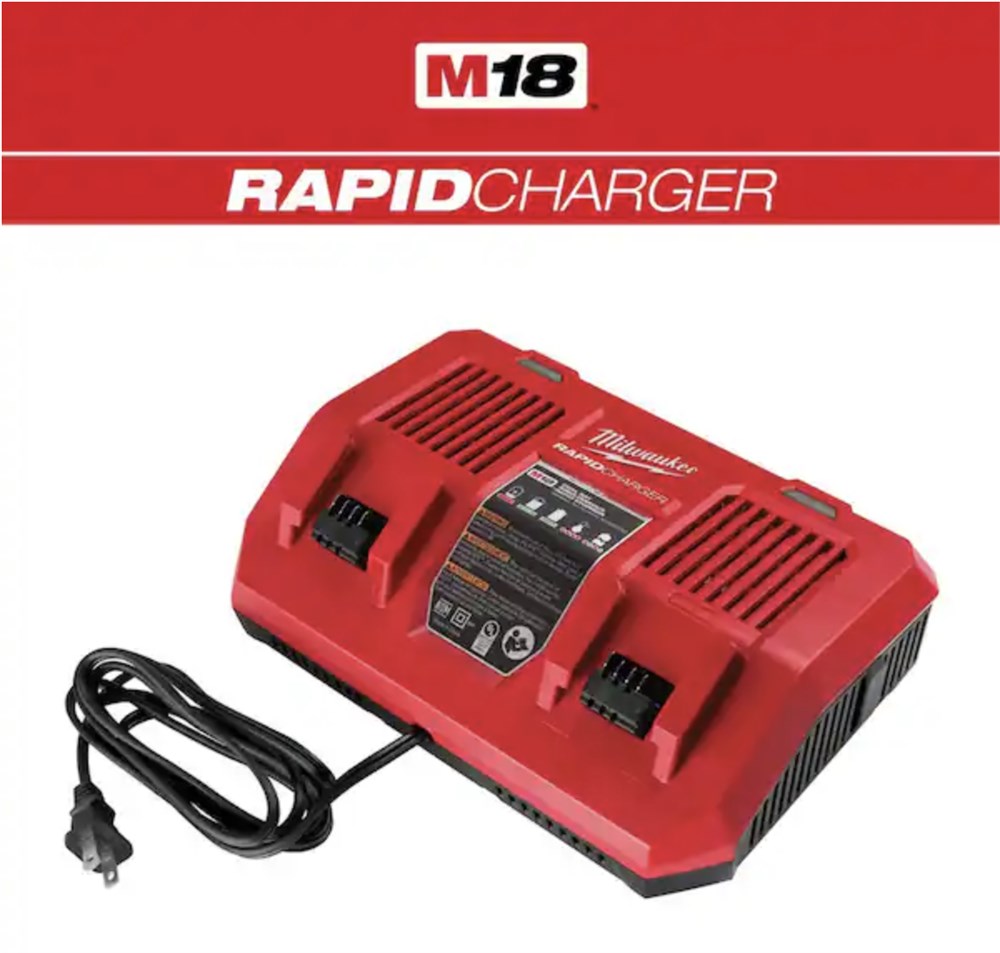 Charges 2 packs simultaneously, over 3X faster Charges all M18 batteries Rapid Charger