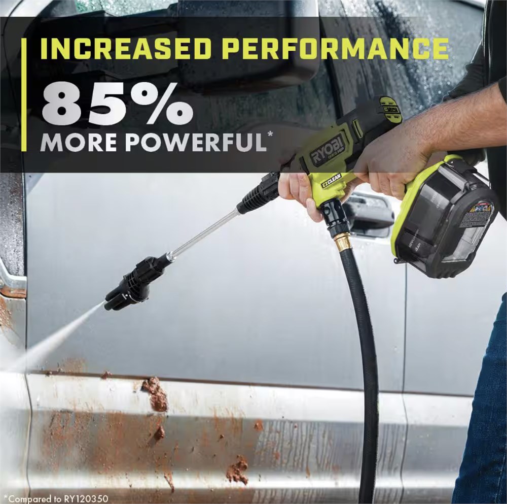 Convenient on-the-go cleaning with 600 PSI 0.7 GPM 25 minutes of runtime using 18V 4Ah battery Over 300 ONE+ tools – all work with any RYOBI ONE+ 18V battery
